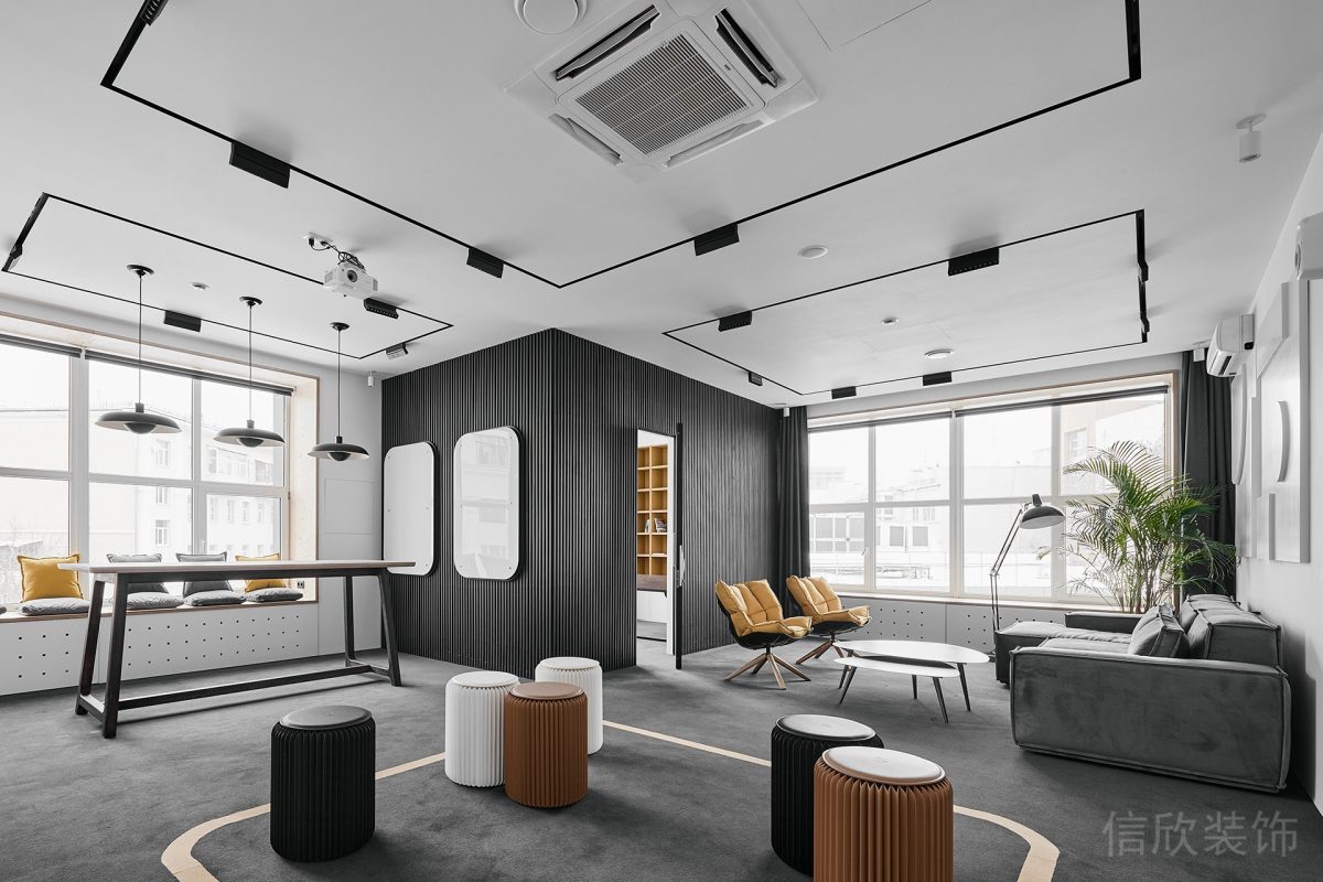 深圳市南山區(qū)華僑城智慧廣場(chǎng)灰調(diào)幾何工業(yè)風(fēng)辦公室裝修設(shè)計(jì)