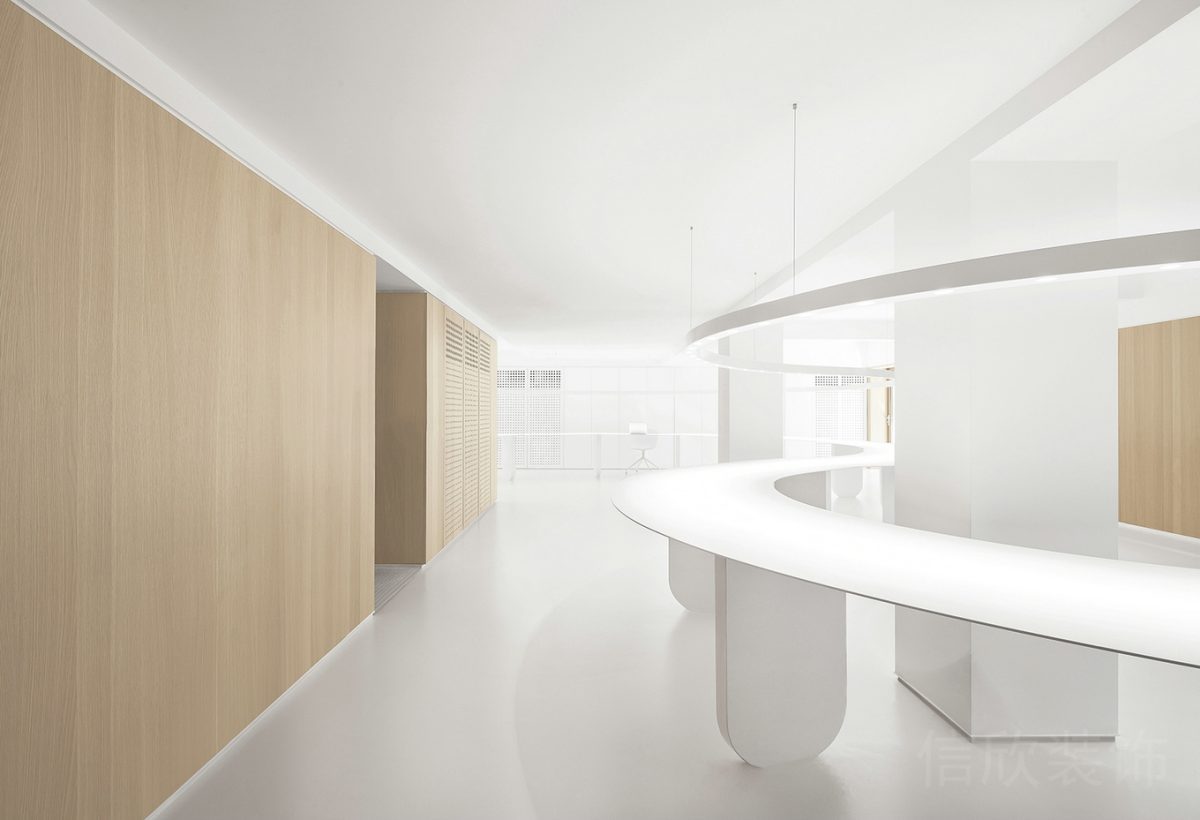 寶安區(qū)置富大廈的現(xiàn)代原木風(fēng)辦公室裝修設(shè)計將展現(xiàn)出設(shè)計專業(yè)的獨特魅力。我們運用藍(lán)色墻體皮革軟包和環(huán)形木飾面天花板的組合,打造出既舒適又富有層次感的空間。玻璃墻體隔斷確保開放性與私密性的完美平衡,而階梯式地臺則引入了動感的視覺效果。內(nèi)嵌式幾何線條燈飾與木質(zhì)墻體相得益彰,營造出溫馨而現(xiàn)代的氛圍。藍(lán)色設(shè)計座椅和綠化地毯增添了活力與舒適感。茶幾、水磨石地板以及過道微景觀設(shè)計進(jìn)一步提升了整體空間的功能性和視覺吸引力。白色光面瓷磚與灰色墻體涂料的搭配則確保了空間的明亮與現(xiàn)代。整體設(shè)計體現(xiàn)了細(xì)致的專業(yè)性和對空間功能與美學(xué)的全面把握,為企業(yè)提供一個高效、舒適的工作環(huán)境。