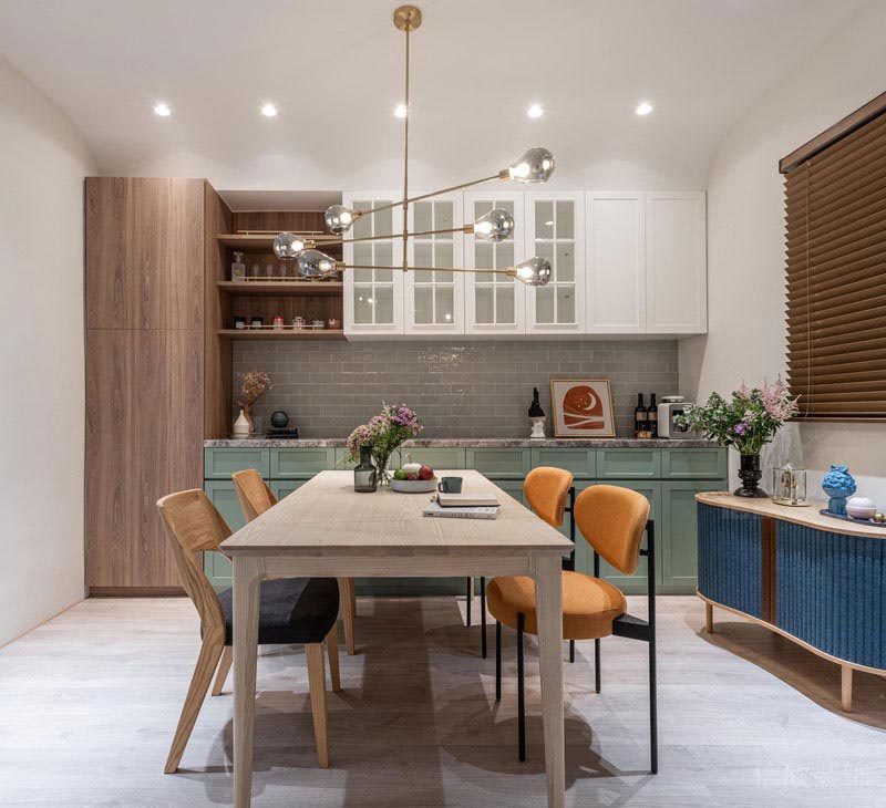 開放式的廚房,簡單實(shí)用,更讓空間感強(qiáng)烈,顯得寬敞而明亮;北歐式的原生木藝術(shù)桌椅,盡顯一派溫馨的氣氛。