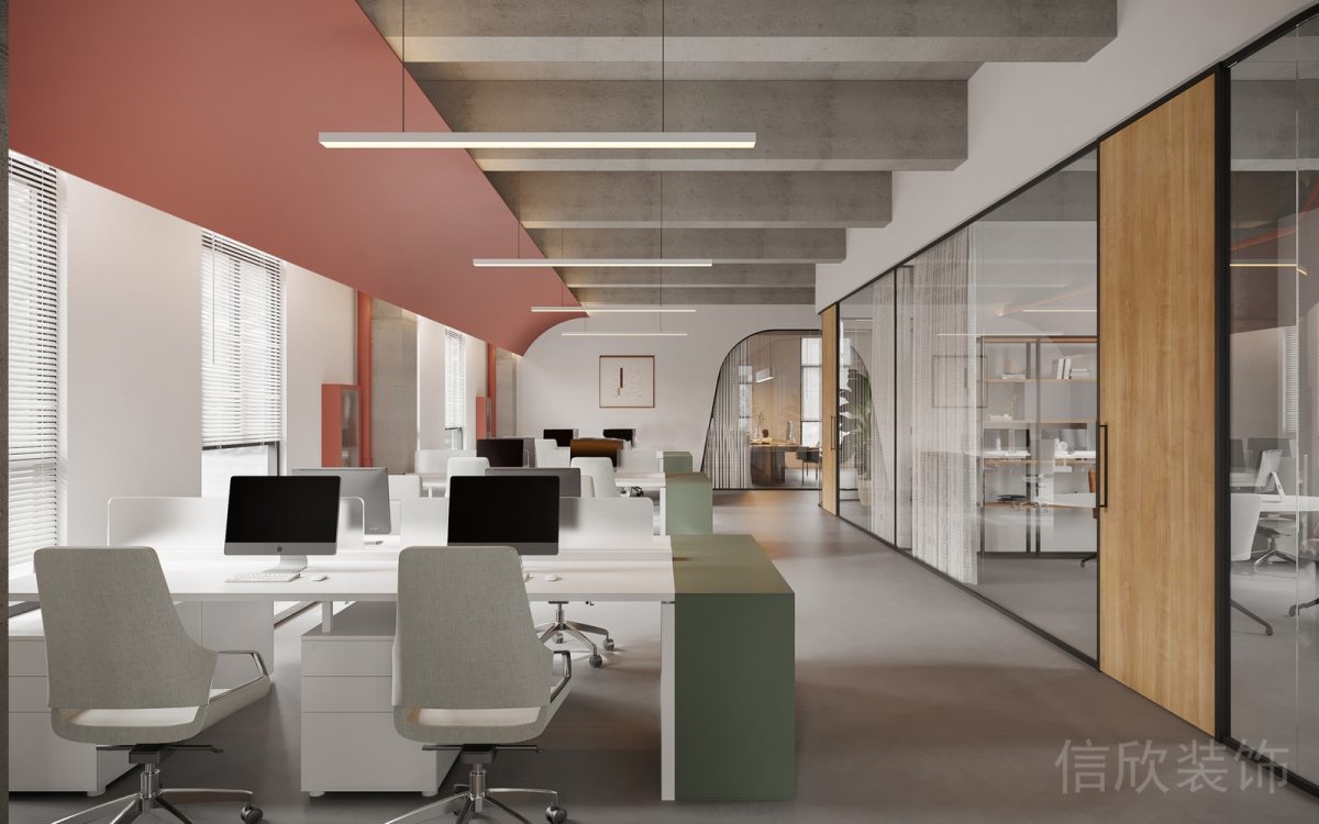 現代風格辦公室裝修設計效果圖,簡約輕奢的裝修風格,在滿足使用功能的前提下,摒棄多于的裝修裝飾。色彩多采用黑白灰等無彩色,裝飾多采用簡潔直線條,材料多應用現代工業(yè)所生產的裝修材料,如玻璃、地毯、各種金屬材料等。辦公卡座較少應用帶屏風的卡座,一般采用簡單的鋼木結構辦公卡座,對坐模式。此類裝修風格優(yōu)點:裝修費用低,裝修快捷工期短,辦公室利用率高,是公司辦公室裝修中應用最多的裝修風格