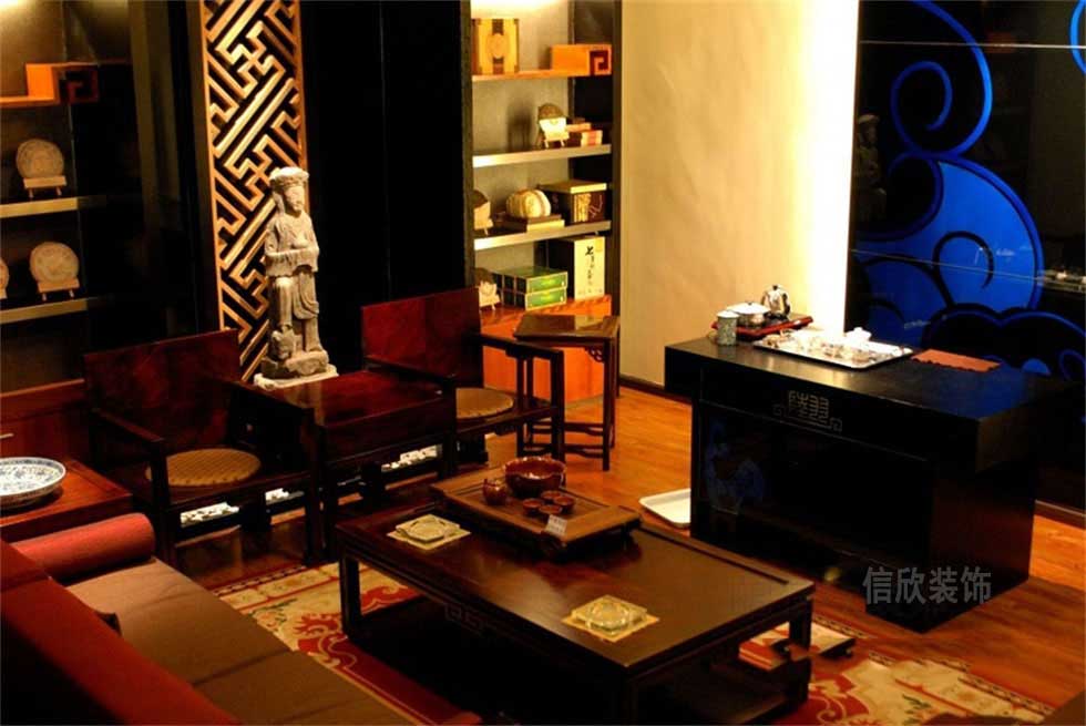 大廳采用和墻面融為一體的展示柜,在燈光的照射下,凸出內(nèi)部展品的效果,實(shí)木的前臺和茶葉展示柜,把茶文化這一經(jīng)典的文化傳承,展示在了客戶面前,讓人沉醉在其中。
