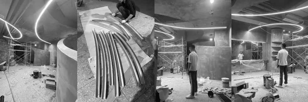 弧線在建筑空間中的藝術美學規(guī)律多表現為若干弧線的重復和漸變,重復即是同一規(guī)格設計元素的有序排列形成從弧線到弧面的建筑體量感,具有整體性,弧線的漸變則是由線到面的不同方向、長度、弧度的變化,組成多樣的流線型建筑體量空間共構完整的建筑空間藝術美。