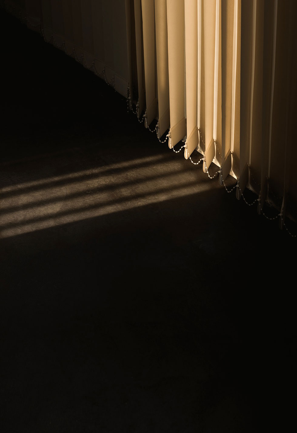 在適當?shù)奈恢瞄_口引光入室,配合人造的光源,在地面上留下點點微光層層遞進,頂上燈條在幽暗中破開一條光亮縫隙,引導前行。