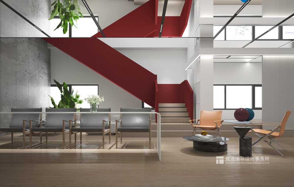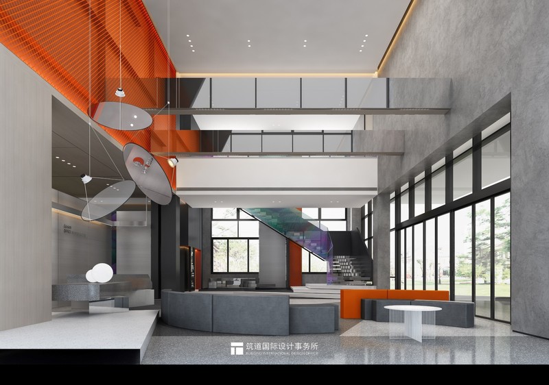 一層丨前臺 大廳整體以亮色為主調(diào),搭配靈動的家具,給人活躍而熱情的視覺感官。結(jié)合企業(yè)文化,前衛(wèi)而簡約的設(shè)計體現(xiàn)了品牌特有的美學(xué)理念。