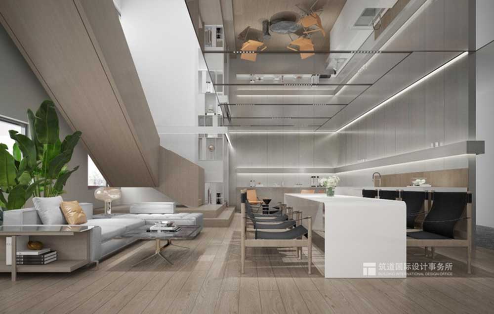二層丨休息區(qū) 休息區(qū)是年輕員工的聚集地,以灰白色調(diào)相互運用,給予整體空間清爽而簡約。 員工可以在這里休憩聊天,也可以隨時隨地的辦公,讓辦公場地不再局限,更加高效。