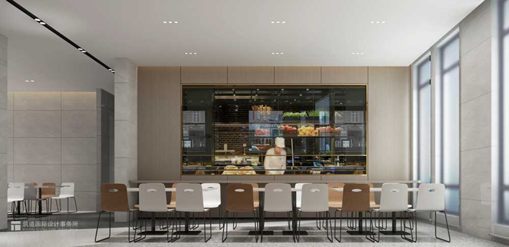 一層 | 食堂用餐區(qū) 餐廳區(qū)域運用多元化結(jié)構(gòu),樸素的色彩,簡約的家具,流暢的線條讓設(shè)計更簡潔、純粹。
