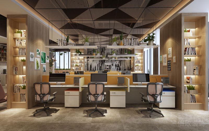 網(wǎng)吧式的小辦公室,頂柜兼具使用和收納的功能,同事間更多了幾分合作和交流,工作氣氛好。