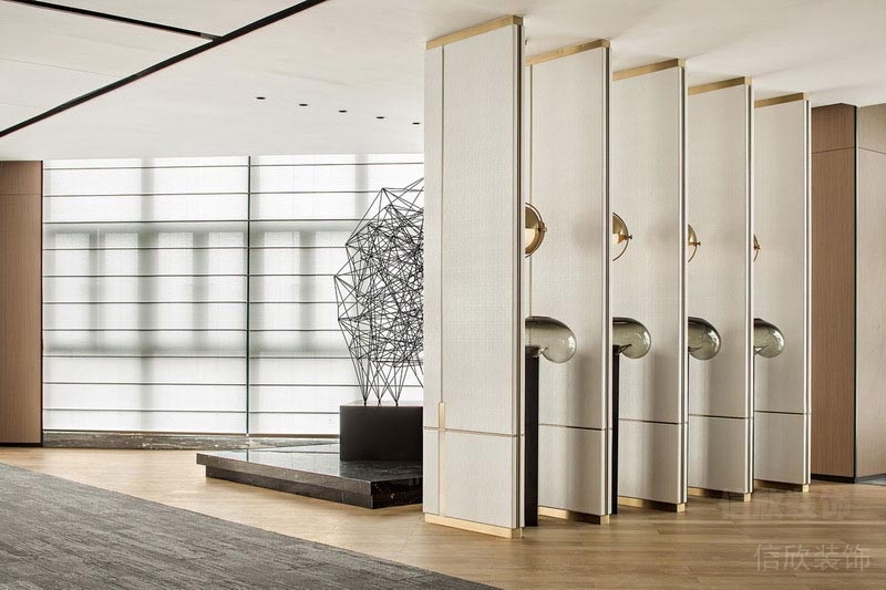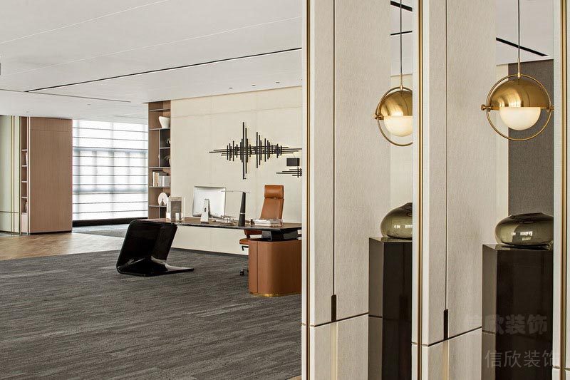 本案位于深圳市羅湖區(qū)是一所現(xiàn)代輕奢風的暖色辦公室裝修設(shè)計案例,輕奢風辦公室裝修設(shè)計時尚線條匯聚您的心靈,在色系的運用上,大部的色調(diào)以淺色作為主色調(diào),稍微用亮色進行點綴。從視覺的角度上來說,淺色與深色相比,是一種較為舒適、柔和的色調(diào),再加上少許的亮色點綴,會使整個空間既有和諧統(tǒng)一的感覺,又突出了視覺層次感,給空間增添許多生氣和溫度。輕奢風辦公室裝修設(shè)計時尚線條匯聚您的心靈,色彩是定位風格的重要因素,想要打造出輕奢的感覺,必然要經(jīng)過巧妙的色彩搭配,才能顯現(xiàn)出豐富的魅力。 在色彩選擇上,輕奢風格一般會選用象牙白、奶咖色、碳灰或米杏色等,一些帶有高級質(zhì)感的中性色調(diào),通過巧妙混搭讓空間氣質(zhì)得以提升,盡顯現(xiàn)代時尚優(yōu)雅的風范。