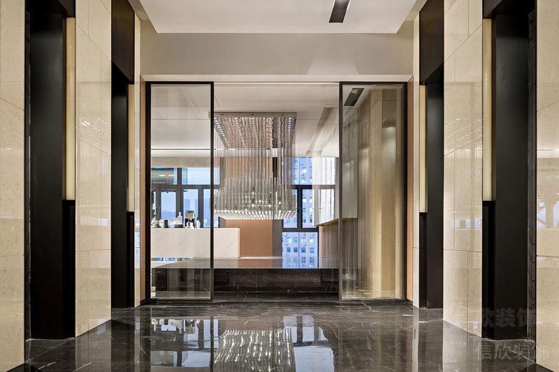 天然的黑色大理石紋,一副水晶吊燈組成的山水畫,充滿了設(shè)計感和創(chuàng)新,在燈光完全打開的情況下,就變成一顆流光溢彩,耀眼奪目的明珠。