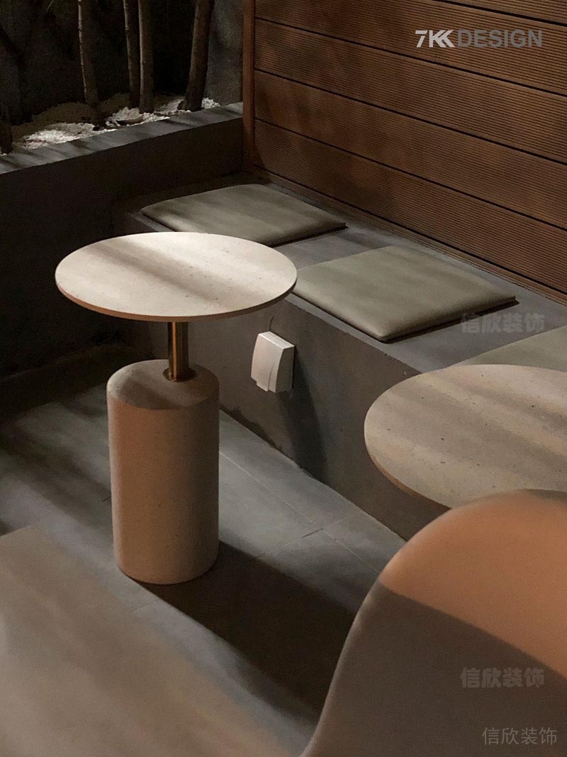 水泥地配原木,加以黑色筒燈和白色高腳凳,帶點微工業(yè)質(zhì)感卻又不失咖啡館的安逸舒服。