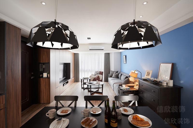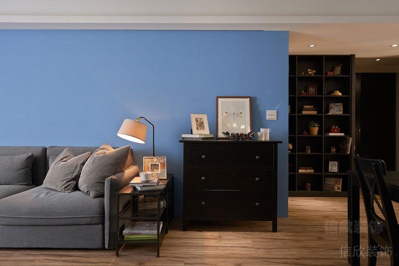 原木紋木地板的鋪貼,體現(xiàn)了北歐風(fēng)的自然,生命的氣息;干凈純白的吊頂,淡藍色如天空般清澈的沙發(fā)背景墻則表現(xiàn)出北歐風(fēng)極簡主義的創(chuàng)作手法,無主燈而寬敞通透,坐在絨布沙發(fā)上,享受這特意的寧靜生活。