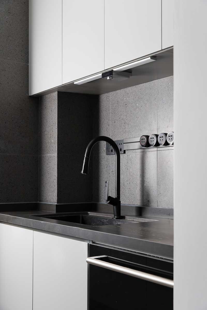 廚房采取兩邊直通式樣的吊柜和地柜的設(shè)計方式,把烹飪區(qū)和洗菜區(qū)做了一個完美的分隔,更增加智能家居洗碗柜等元素,使用起來功能性強,且操作的面積更寬敞。