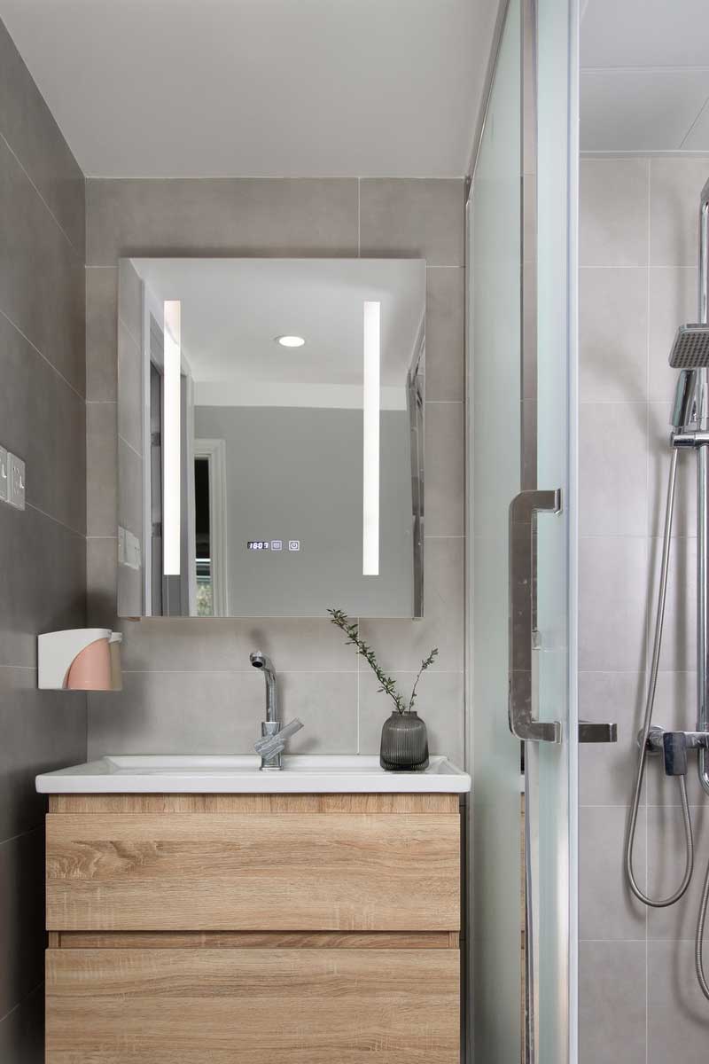 過道的裝修和整體風(fēng)格相適應(yīng),以簡潔素白為主,白色的墻面和門以淺色系原木地板相得益彰,墻面采用嵌入式的鞋柜和置物柜方式,既不影響空間,又能提升房間整體的美觀性。