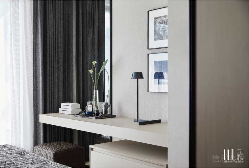 白色的素雅墻面,原木色的地板衣柜,以及灰色的布藝大床搭配,玻璃的衣柜更顯現(xiàn)代的設(shè)計(jì)理念,實(shí)木電視柜的設(shè)計(jì),讓人推門(mén)進(jìn)來(lái),就能感受到奢華五星酒酒店客房的高端舒適。