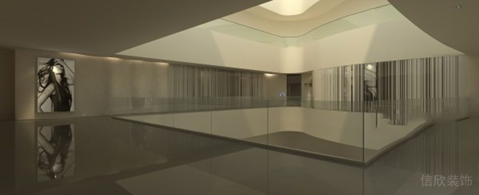 大廳的裝修的設(shè)計(jì),整體采用純色和中空式的表現(xiàn)手法,使空間視野感開闊,然后用波浪形的墻面和石膏頂面的設(shè)計(jì),增強(qiáng)了整個(gè)大廳的線條感,和三維立體感。