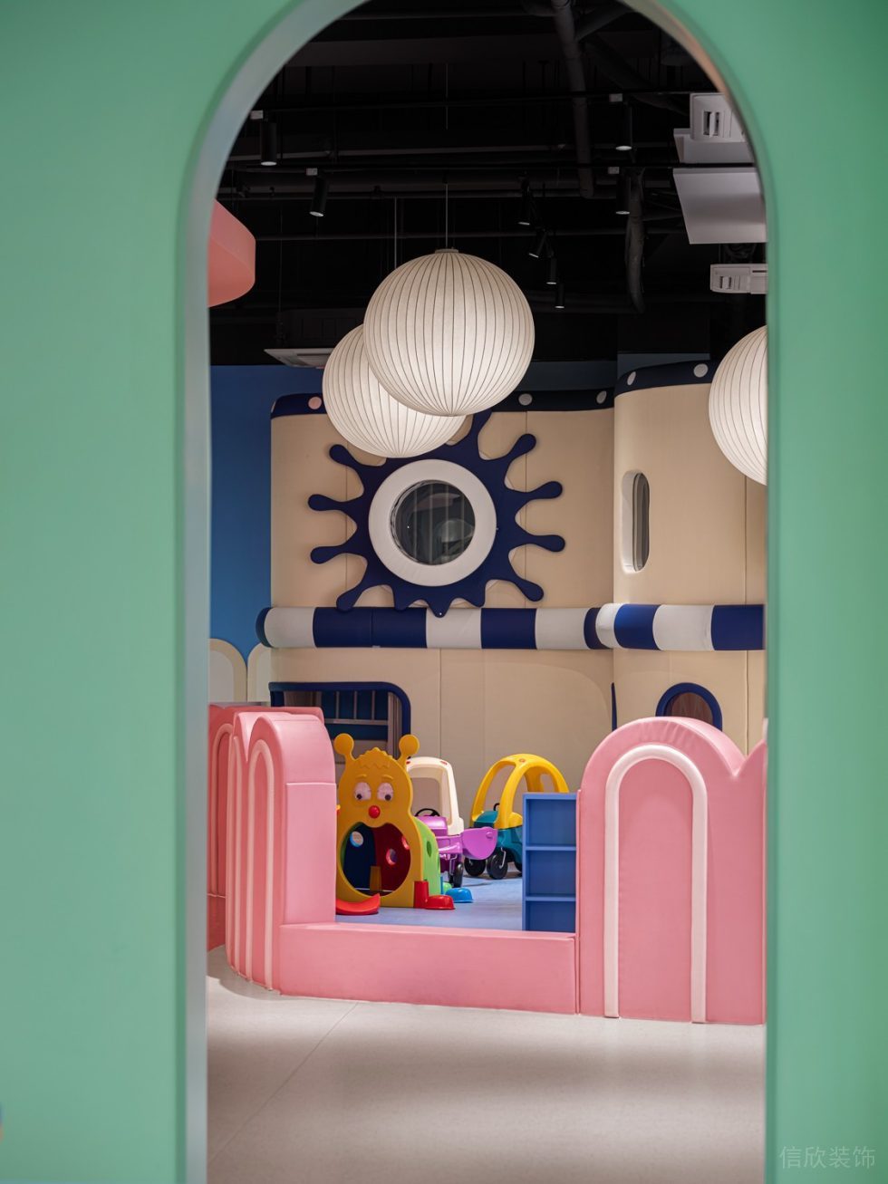 設計理念:本案是一所北歐風格的兒童樂園裝修設計案例,由深圳信欣裝飾公司設計團隊傾力打造,根據(jù)客戶的要求,本案作為室內(nèi)親子類兒童游樂園項目,隨著社會的發(fā)展,兒童如何科學健康的成長,父母該怎么陪伴兒童度過一個有趣的童年,怎么在這個過程中開發(fā)孩子天真活潑的天性,越來越受到大家的關注。信欣裝飾公司的設計團隊,力求設計出一個滿足孩子的幻想和天性的童趣樂園。外立面采用樂高積木的造型,用充滿夏日般活力的橙色為基礎,加上各種色彩的點綴,能夠吸引到孩子的注意和興趣。大廳里則保持原始的頂面噴黑的形式,看起來更自然不加多余的雕琢,前臺同樣以淺粉色的造型,猶如草莓冰淇淋的顏色。內(nèi)部設有孩子專屬的游樂區(qū),游戲中增進孩子們的感情,還有專門的休息的等候區(qū)供家長們使用,酷炫的兒童卡丁車,讓孩子們在賽道上體驗放飛自我的激情,隨時可以來一場屬于勇敢者的挑戰(zhàn)。