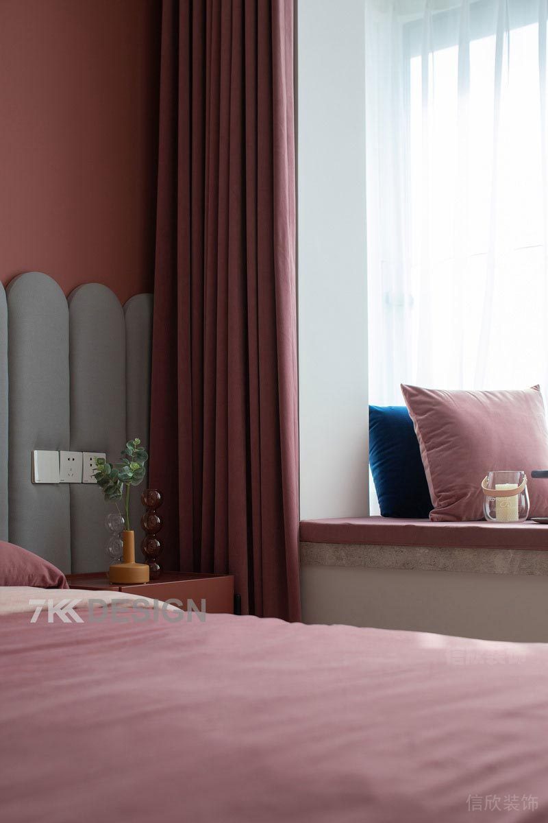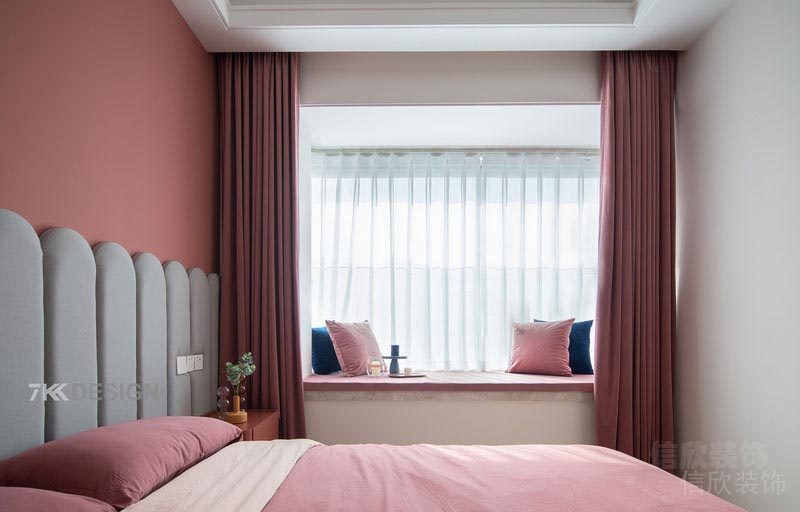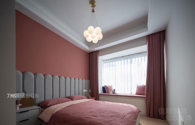 窗簾的搭配,看出業(yè)主真的很喜歡紅色。紅色整體看起來(lái)也比較素凈,同時(shí)也給人一種很暖暖的視覺(jué)感,讓臥室更加溫馨浪漫。