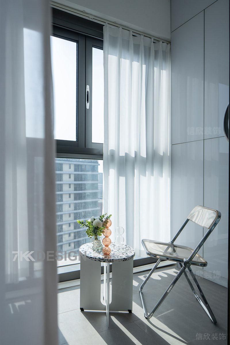 客戶(hù)說(shuō)陽(yáng)臺(tái)想要一個(gè)美好的休閑角落,可以曬曬太陽(yáng),能坐著看書(shū),同時(shí)希望能有限利用陽(yáng)臺(tái)做好收納功能。陽(yáng)臺(tái)簡(jiǎn)約空間中藏著詩(shī)意的密碼。只需要一束光,詩(shī)意便可到達(dá)。透過(guò)落地窗,我們與自然的距離仿佛消弭,感受自然的撫慰。一抹綠讓小小的陽(yáng)臺(tái)仿似有了生命和聲音,牽引著身在其中的人到達(dá)心中的美好。