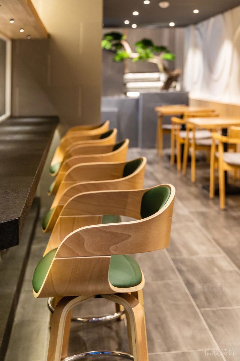 一排整齊的原木凳子,靠在吧臺上,真像極了在日本本土的的感覺。