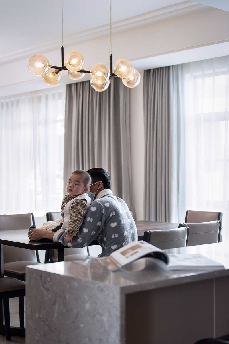客餐廳經(jīng)過(guò)調(diào)整空間的比重,得到更為開(kāi)闊的公共空間以及更自由的活動(dòng)軌跡,整個(gè)空間重構(gòu)比例,利用材質(zhì)的特性以及調(diào)整整體細(xì)節(jié)后,將入戶玄關(guān)、客餐廳以及廚房原有四大塊略顯局促的獨(dú)立盒子化整為零。