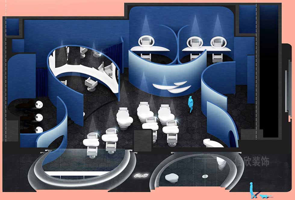 深圳福田藍(lán)色的美容美發(fā)店裝修平面布置