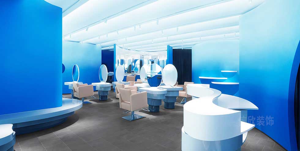 深圳福田藍(lán)色的美容美發(fā)店大廳裝修