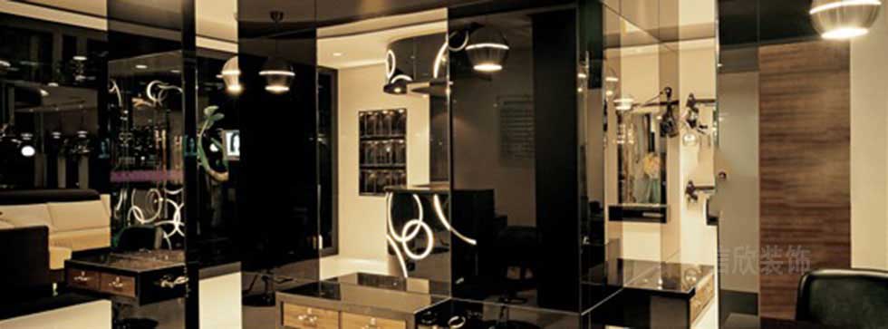 整體色調采用黑色和黃色作為搭配,在燈光的作用下,顯得冷峻,深邃,神秘感強烈,更符合發(fā)型設計中心,時尚個性的氣質。