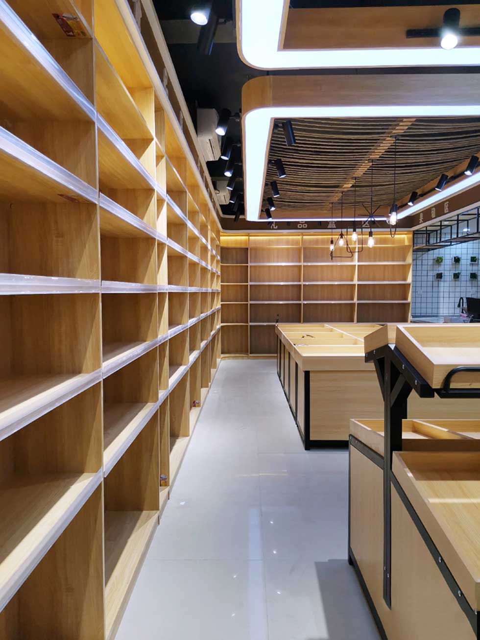 水果店大廳的設(shè)計,以簡約的風(fēng)格,灰色系的地面和原木風(fēng)的家具搭配,塑造出暖系風(fēng)的感覺,在光影的折射下,注重細(xì)節(jié)的展示,原木紋理的家具,給人一種綠色自然的韻味。