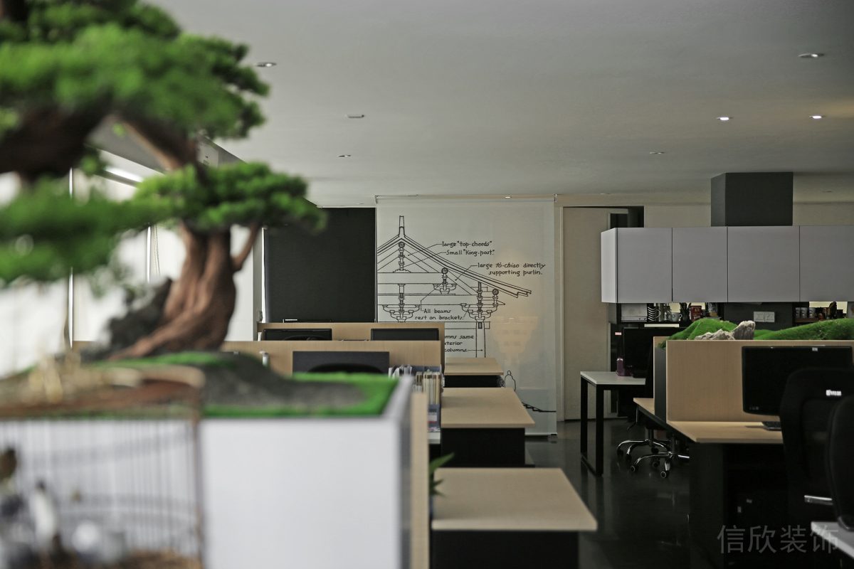 本案深圳羅湖辦公室裝修設(shè)計(jì)效果圖,辦公室裝修布局方案通過典型的回形區(qū)域分割和對稱軸線來組織空間秩序,力求將復(fù)雜的辦公區(qū)域簡潔化,充分發(fā)揮建筑原有落地窗采光特點(diǎn),最大化利用自然光線和通風(fēng),順勢而為創(chuàng)造出更多明亮的開放空間。辦公室空間設(shè)計(jì)在材質(zhì)上使用簡單、自然、耐用的材料,地面采用灰色地坪漆鋪設(shè),墻面采用白色乳膠漆涂刷,隔斷采用大面積鋼化玻璃處理。整體空間通過細(xì)膩的布局、簡潔的色彩,樸素的軟裝,力求給使用者提供一個(gè)潔凈雅致、輕松自然的現(xiàn)代化辦公氛圍。以素雅做為空間的主色調(diào),一方面符合企業(yè)的形象,另一方面對于企業(yè)的發(fā)展有很好的推動(dòng)作用。
