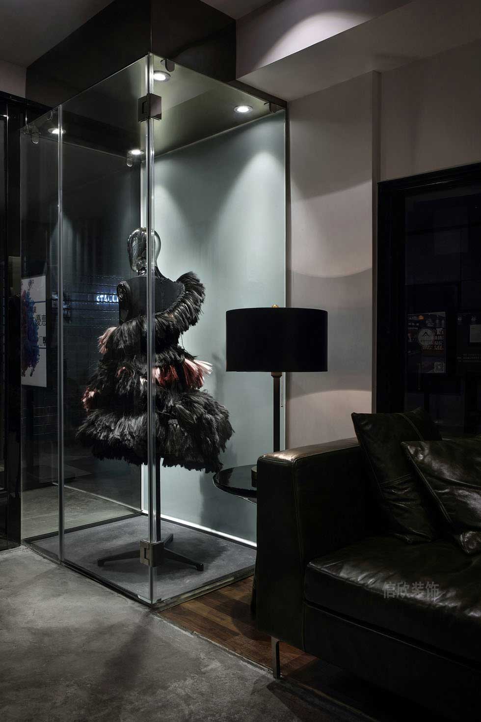 入戶的設(shè)計(jì)嗎,采用黑鈦拉絲不銹鋼的落地式門窗設(shè)計(jì),可以將內(nèi)部空間最大限度的有一個(gè)展示作用,黑色哥特風(fēng)模特的展示,給場(chǎng)景增加一份神秘和深邃的黑色幽默氣質(zhì)。