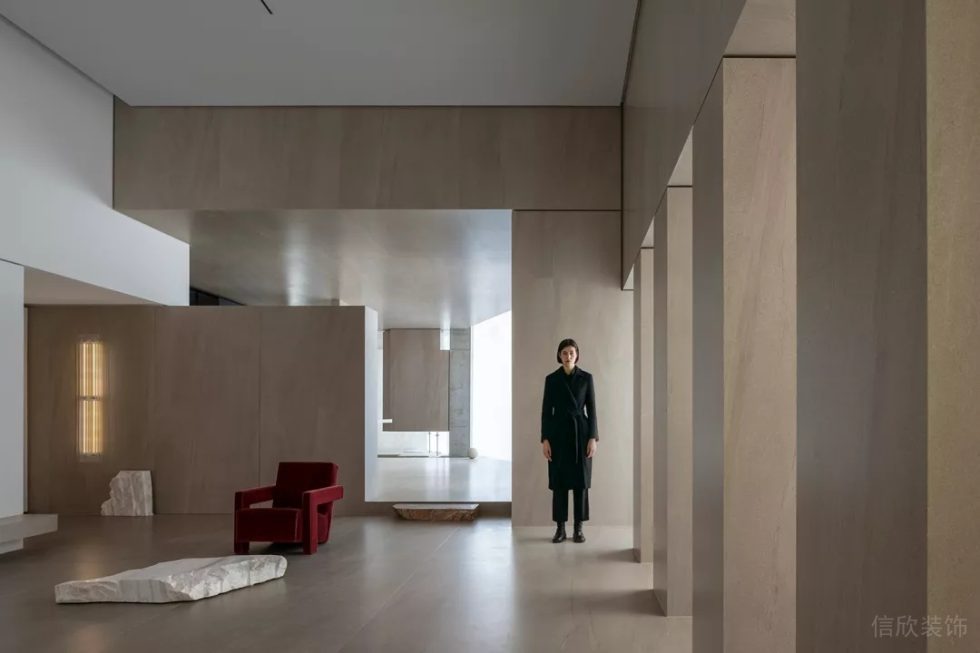 展廳內(nèi)部還有一個(gè)小的收藏室,用來(lái)儲(chǔ)存其他未展覽的藏品。門(mén)的頂部安裝燈帶增加墻面的光效層次感。