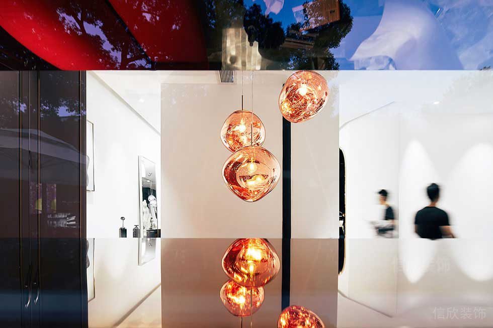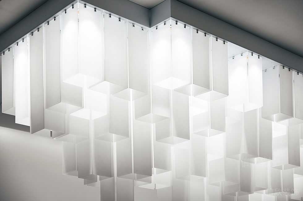 ▼理發(fā)區(qū)中央的管形藝術吊燈