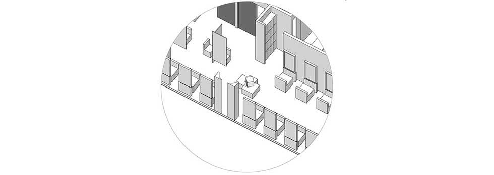 ▼隔斷面擬定了等候區(qū)與理發(fā)區(qū)之間的邊界