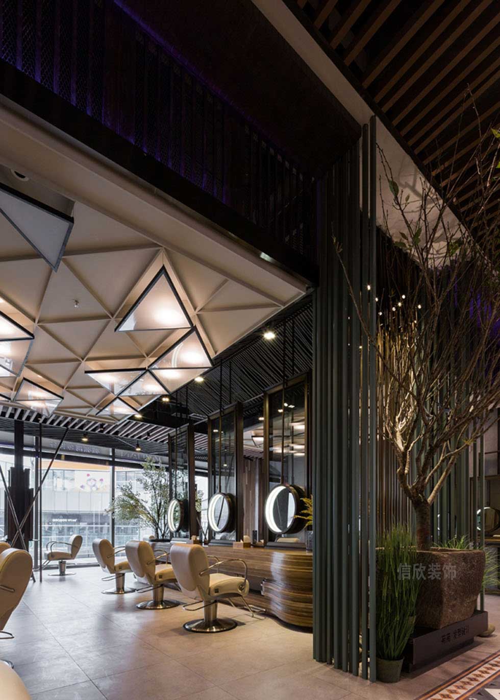 天花板采用星光式的燈光設(shè)計(jì),深邃的星空令人心馳神往,讓顧客在洗發(fā)時(shí),享受心靈暫時(shí)的寧?kù)o與遐想。