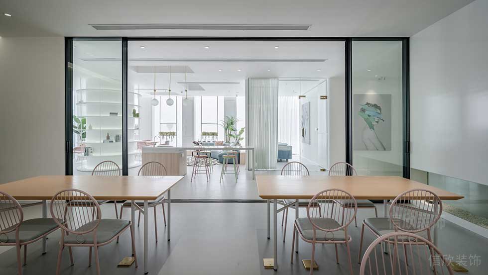 開放式的落地窗設(shè)計(jì),即使不開燈也能把光線完美的引入,少了一份拘束,更容易打開心扉,分開式的小會(huì)議桌和軟包卡座,代替?zhèn)鹘y(tǒng)式的大長桌,打破常規(guī),與時(shí)俱進(jìn),時(shí)尚溫馨。