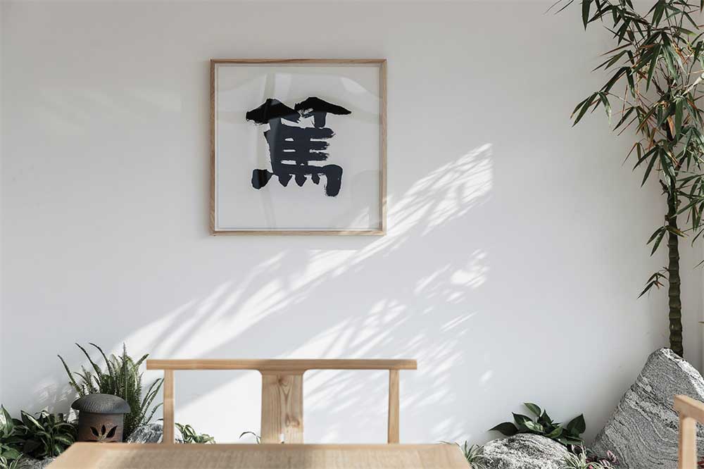 綠植和木飾面板結(jié)合的背景墻,中式的沙發(fā)家具,養(yǎng)眼的綠意,增添了自然的氣息。