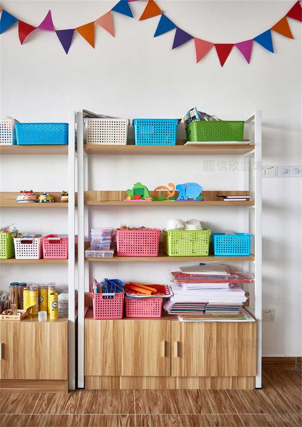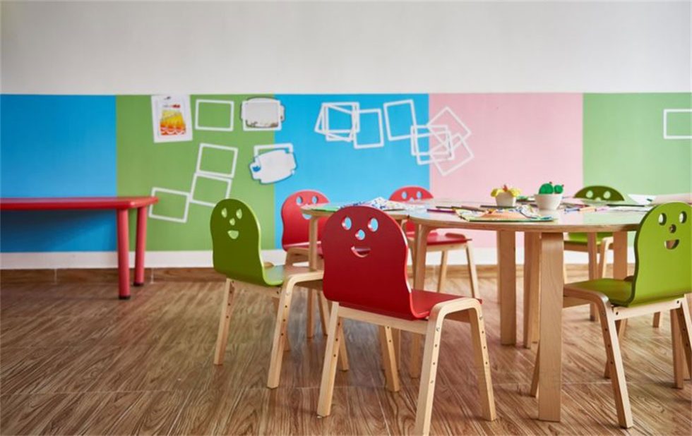 白色的大面積墻面,原木色的地面,大量的留白空間,簡(jiǎn)單干凈,寓意著孩子們的人生圖畫,還是留給他們自己來(lái)勾勒。