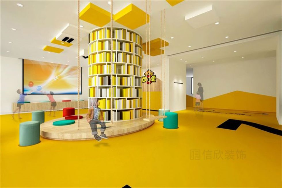 前廳主要是圖書銷售、購買與閱讀,在這里有著各式各樣的書籍,孩子們可以在這里閱讀,柜子的設(shè)計,打破傳統(tǒng)的中規(guī)中矩,柜子中藏著休息區(qū)域,讓空間更有體驗感。