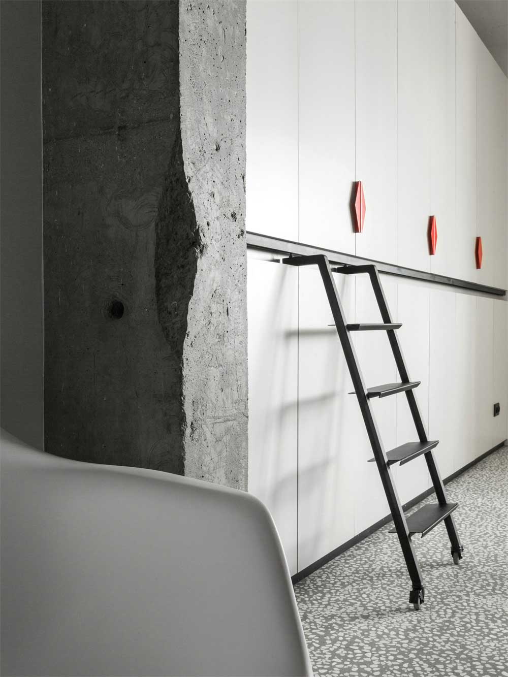 紅色的柜子,白色的天然石材臺(tái)面,酷炫的燈條,時(shí)尚而不缺乏溫馨。