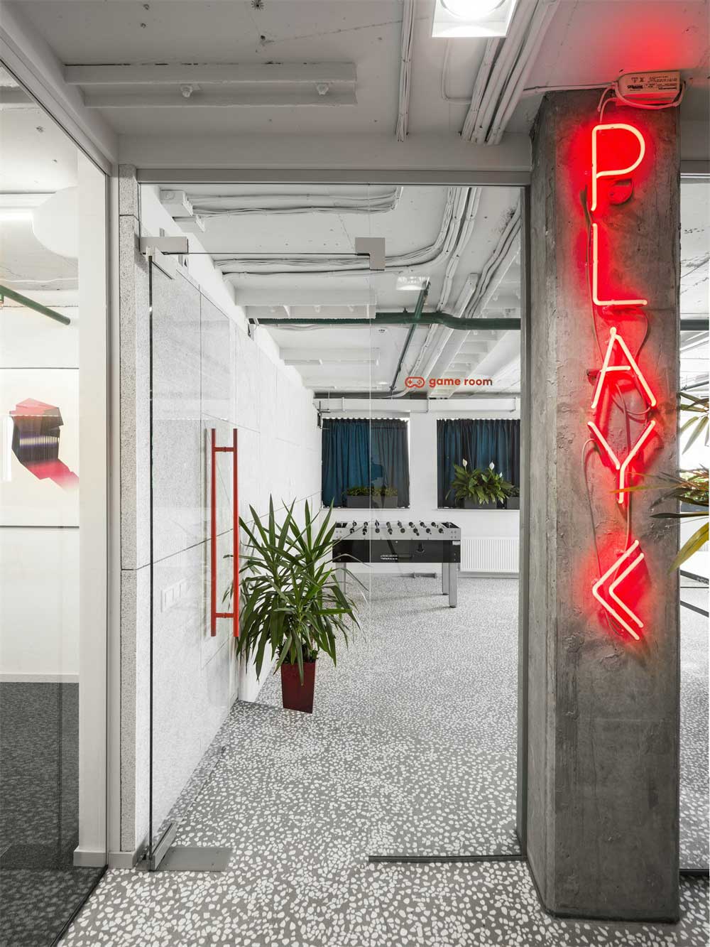 游戲公司辦公室里,設(shè)置了可以打桌上足球和乒乓球的娛樂(lè)室,極大的緩解了工作的壓力,增進(jìn)員工間的感情培養(yǎng)。