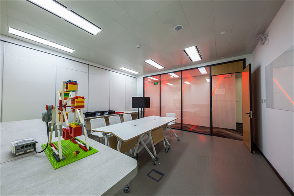 智能燈光控制教學區(qū)的設計簡單明了,一眼望去沒有任何阻礙,主要是讓學員通過智能控制的方式,用燈光把整個空間變的靈動活泛。