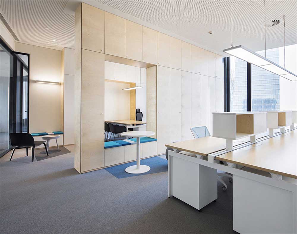 邁科集團(tuán)現(xiàn)代風(fēng)格辦公室休息區(qū),通過抬高地臺(tái)隔出的小區(qū)域既滿足區(qū)域性的劃分,又感覺很有趣味。