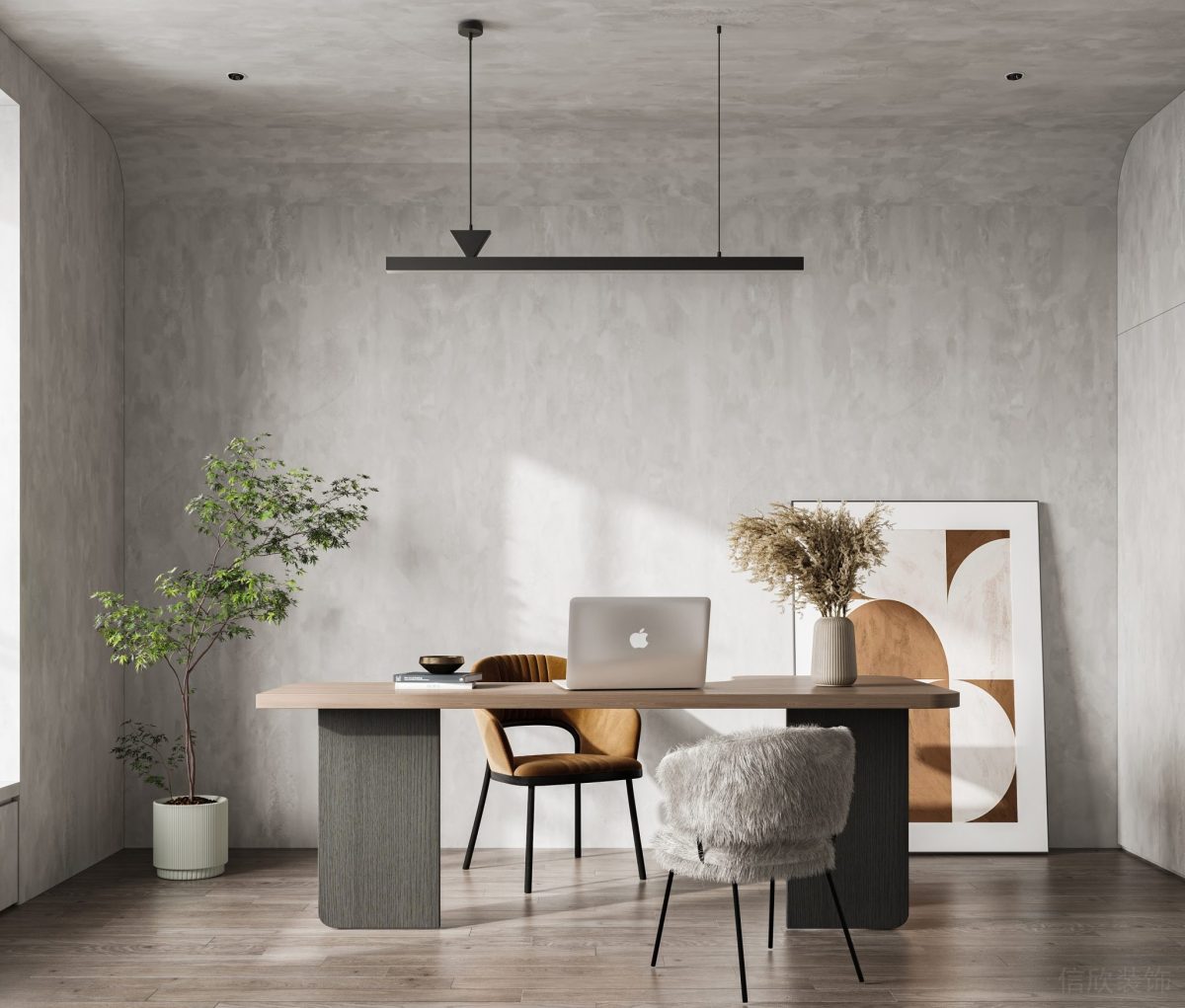 對稱式設計有助于打造整潔、有序的空間感。適用于辦公室的布局,如工位區(qū)或接待區(qū)的對稱布局。
