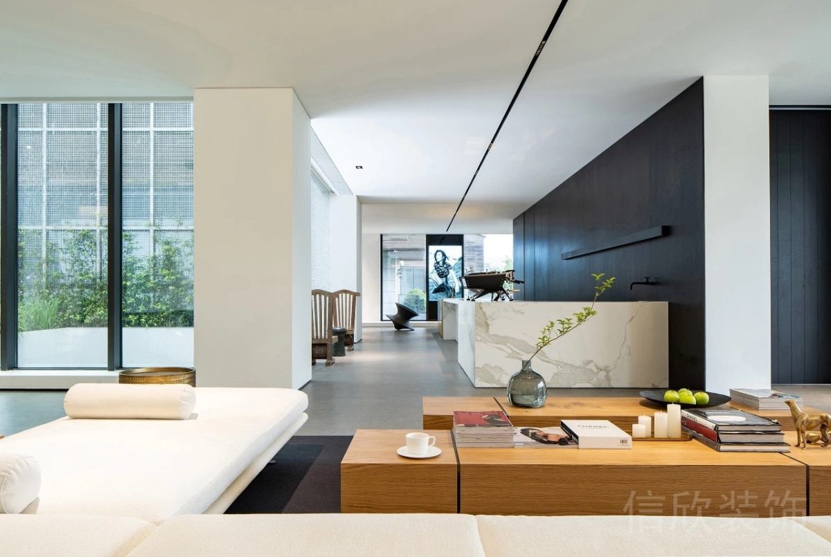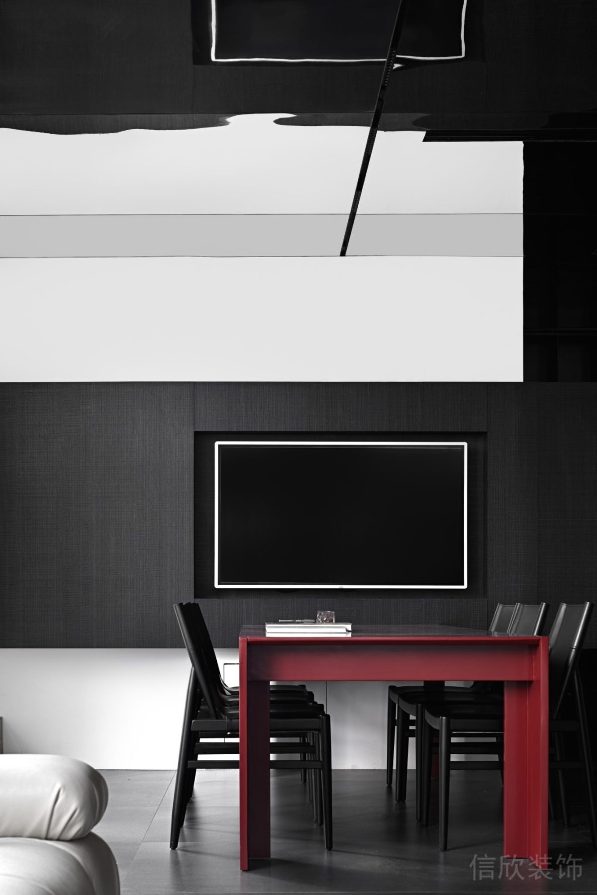 在墻體上使用鏤空設計,搭配黑色和白色的經(jīng)典色調,使空間既有層次感又不過于沉重。