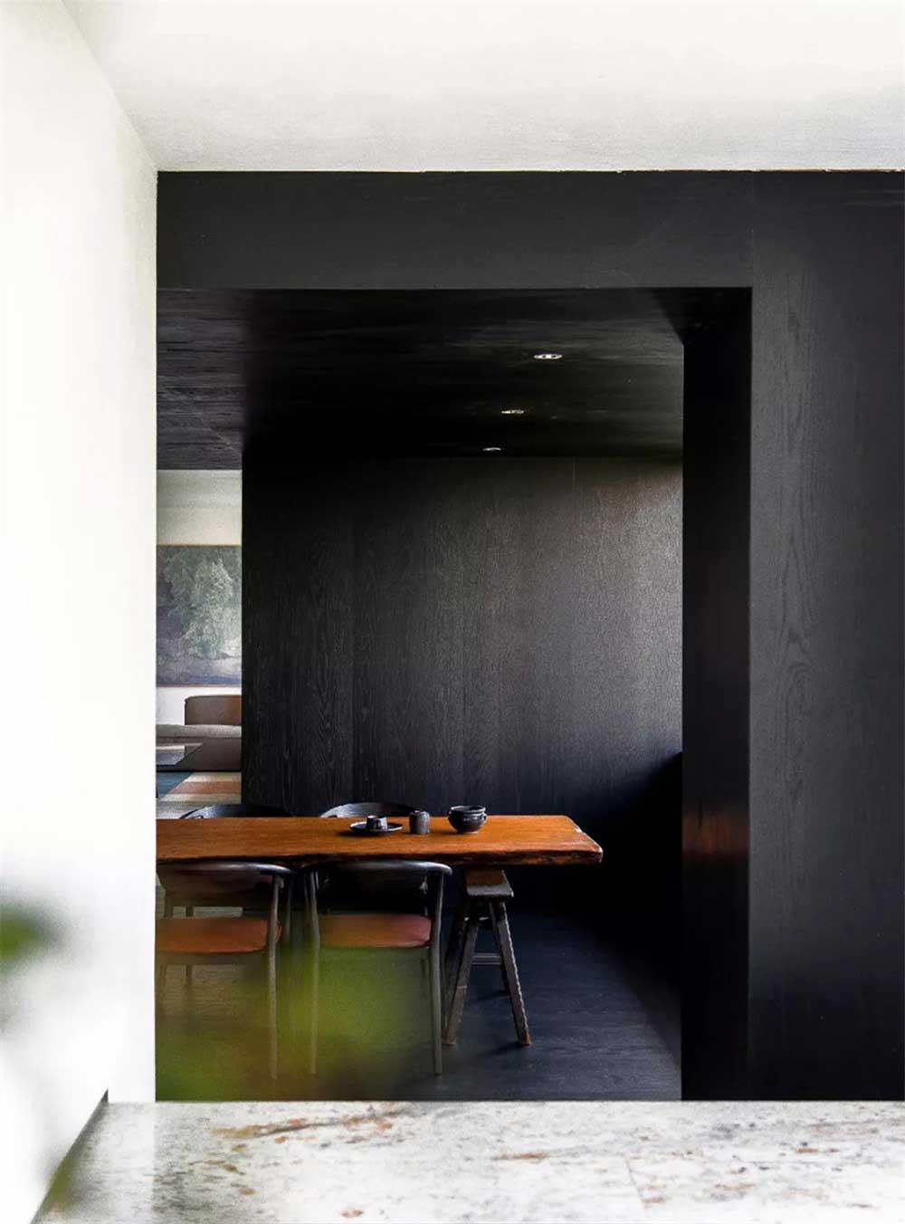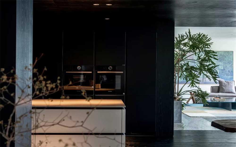 黑色和白色搭配的吧臺區(qū),經(jīng)典的色彩搭配,和整體設(shè)計風(fēng)格的色彩更和諧統(tǒng)一。