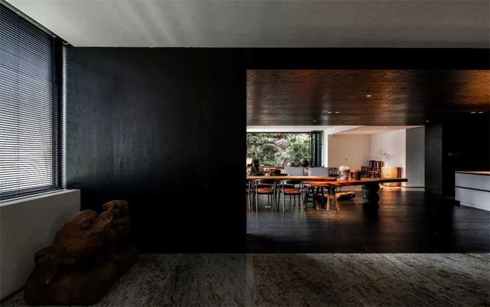 設(shè)計理念:本案是一所新中式風(fēng)的辦公室裝修設(shè)計案例,由信欣裝飾公司設(shè)計團隊親自操刀設(shè)計,征得業(yè)主的同意,在滿足功能性需求的同時,以新中式的理念入手,讓唐詩的美感融入到設(shè)計,以情入鏡,以景入畫,創(chuàng)造出一副符合中國古典美學(xué)的現(xiàn)實中的山水畫作。功能性區(qū)域包括,辦公區(qū),洽談區(qū),吧臺區(qū),弱化了傳統(tǒng)的分區(qū),以全景的設(shè)計方式,來體現(xiàn)既滿足辦公室的實用性,又能放飛自我,不受空間的束縛。大廳黑色的原木風(fēng),長條形天然實木辦公桌,微弱的光影變化等效果,呈現(xiàn)出一副古色古香的畫卷。洽談區(qū)則以室內(nèi)景觀,和大開門式的窗戶把室外的景色結(jié)合到了室內(nèi),用灰色大理石地磚略做空間的區(qū)分,實木的中式家具的精巧擺放,塑造出厚重感和品質(zhì)感的完美設(shè)計。