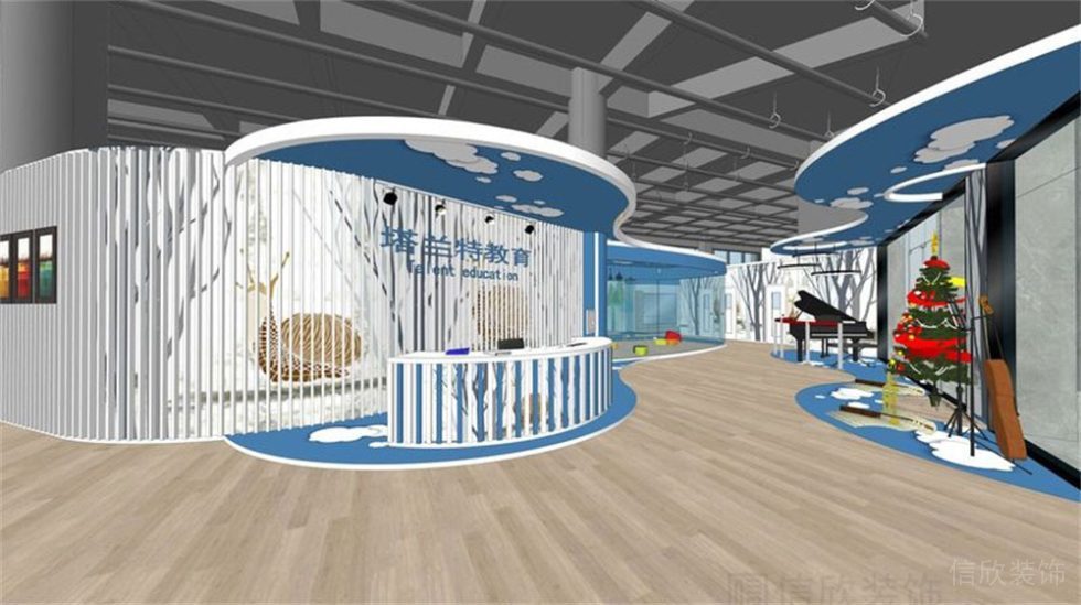 培訓(xùn)中心門頭的設(shè)計,落地窗大開放式的玻璃,最大限度的把光線引入到了室內(nèi),使室內(nèi)光線傳導(dǎo)性好,亮度充足,云彩壁紙的門頭和LOGO完美的融合,主題鮮明,特點醒目。