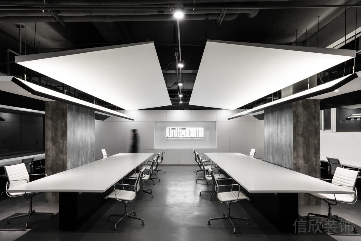 使用白色鏤空幾何墻體,為辦公室過道增添現(xiàn)代感和輕盈感。