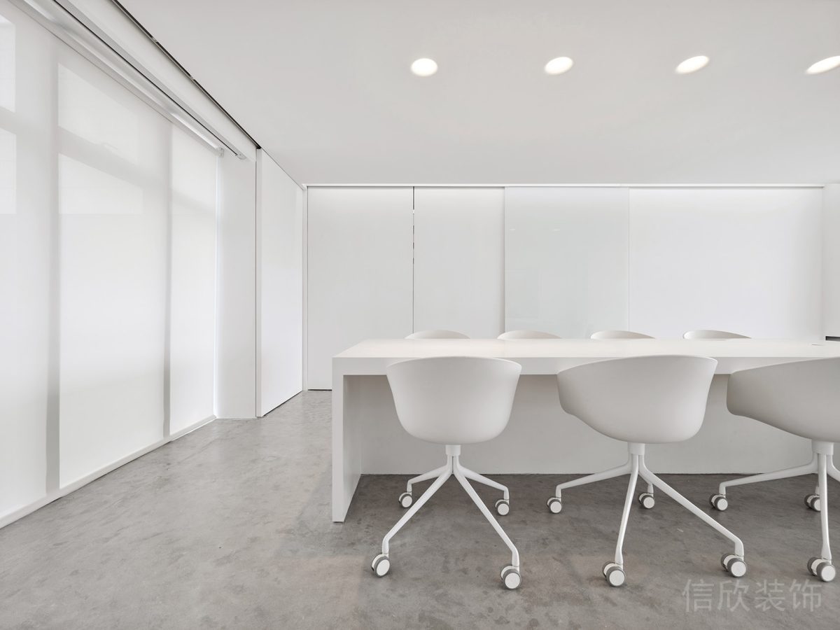 辦公室裝修設(shè)計(jì)地面采用木地板墻面白色烤漆板柜體做開洞設(shè)計(jì)橢圓形的造型增加設(shè)計(jì)感。