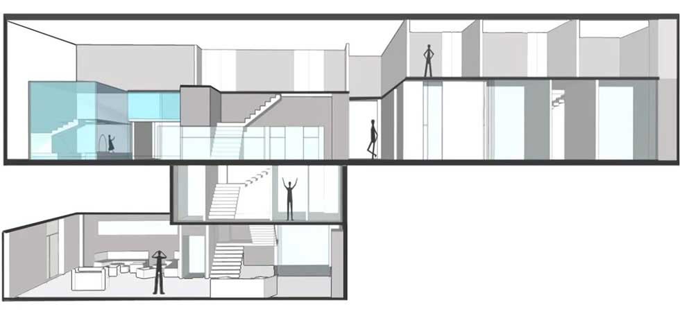 開放式的平面自然地起到了引導(dǎo)訪客的作用,使其能夠輕松地對(duì)環(huán)境形成認(rèn)知。設(shè)計(jì)師利用材料透明度的差異,以最有利的布局策略對(duì)公共空間和私人空間進(jìn)行了劃分。